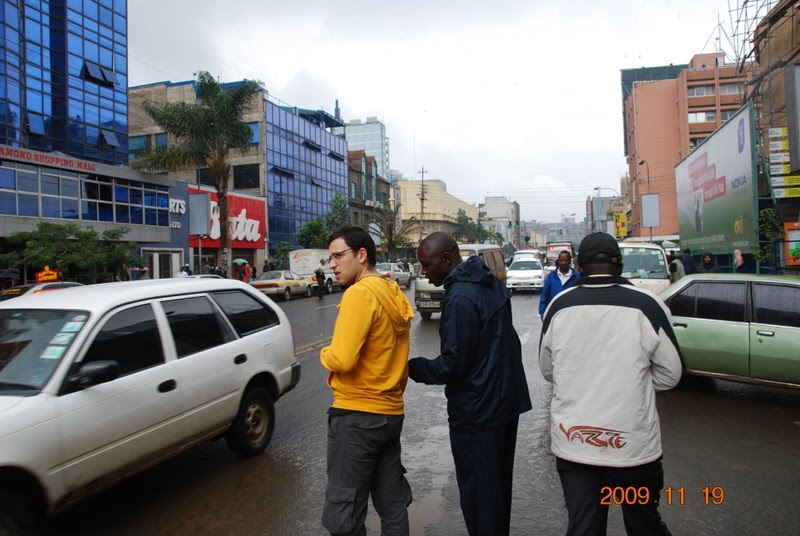 Nairobi'nin havaalanı "Jomo Kenyatta International Airport", özellikle Afrika'ya ilk kez gelenler için geceleri korkunç bir yer. Pasaporttan çıkar çıkmaz etrafımızı taksiciler çevirdi. Epey oyalandıktan sonra biriyle anlaştık, siyah camlı bir arabaya götürüp, iki kişi bindiler.Yola çıkar çıkmaz, artık emindim: Birazdan silahları çekip neyiniz var neyiniz yok diyip bizi soyacaklardı. Yarım saat kadar gittik, şehrin içine girdik. Hangi otelde kaldığımızı sordular. Orada kalmak istemediğimizi söyleyip, başka bir yer bilip bilmediklerini sorduk. Bizi iki kişi için 1000 Şilin (10 EUR) ödediğimiz, merkeze yürüme mesafesinde bir otele bıraktılar.